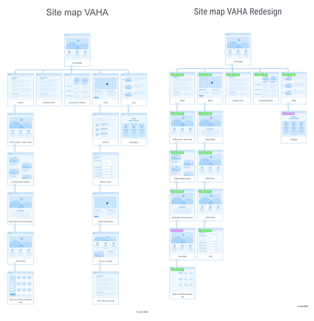 Because users might not want the content “About VAHA” and access to “Vaha” by FAQs, we added “About” to the main navigation, where you can find the “FAQs “ included. We also added “About VAHA”, “VAHA Story” and “Team”, so the user can find all information about VAHA in a short and consistent way.